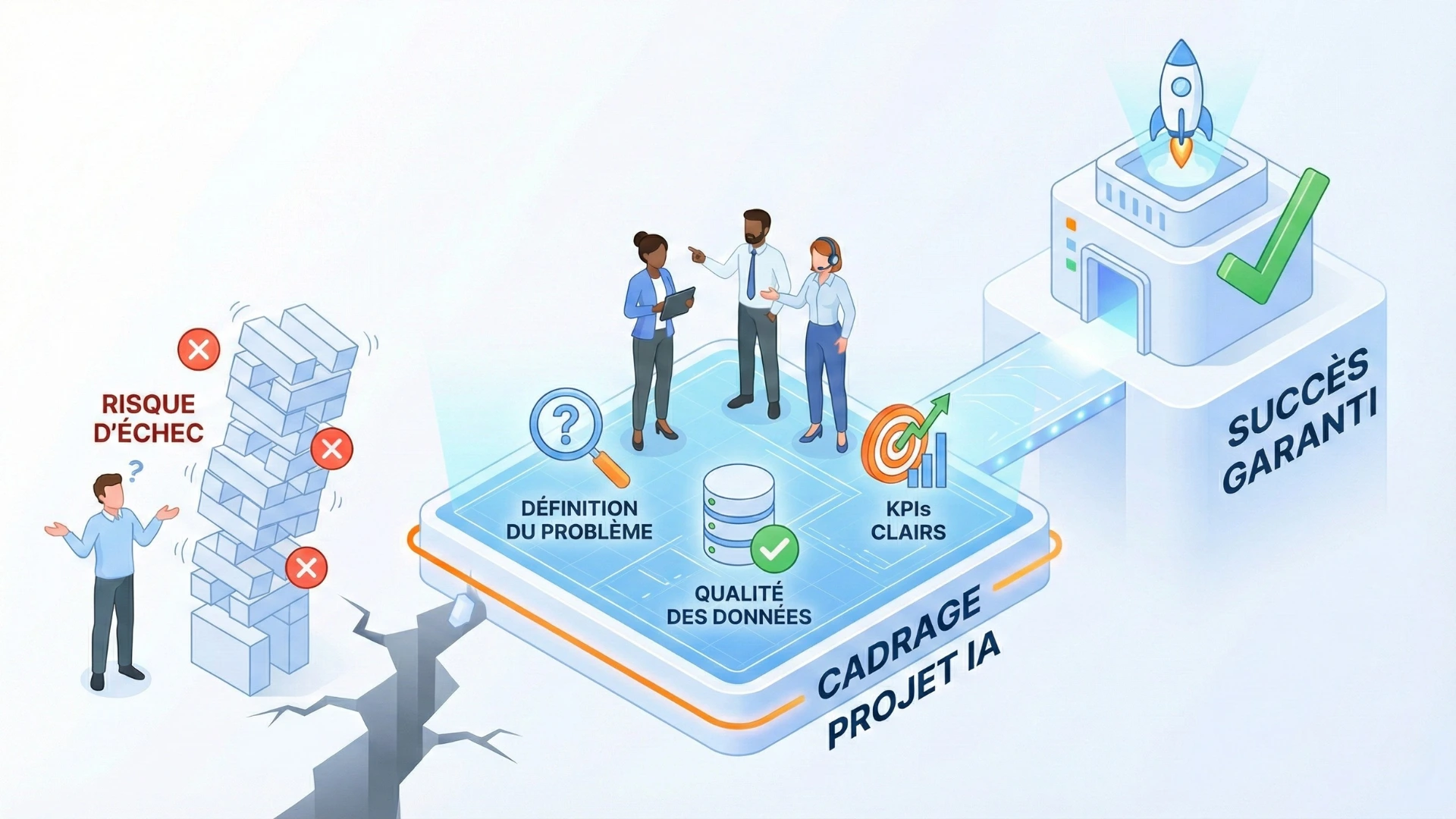 Tapez "cadrage projet IA" sur Google. Vous trouverez des articles de 5 000 mots qui parlent de backlogs, d'architecture technique, de qualité des données et de sprints agiles.