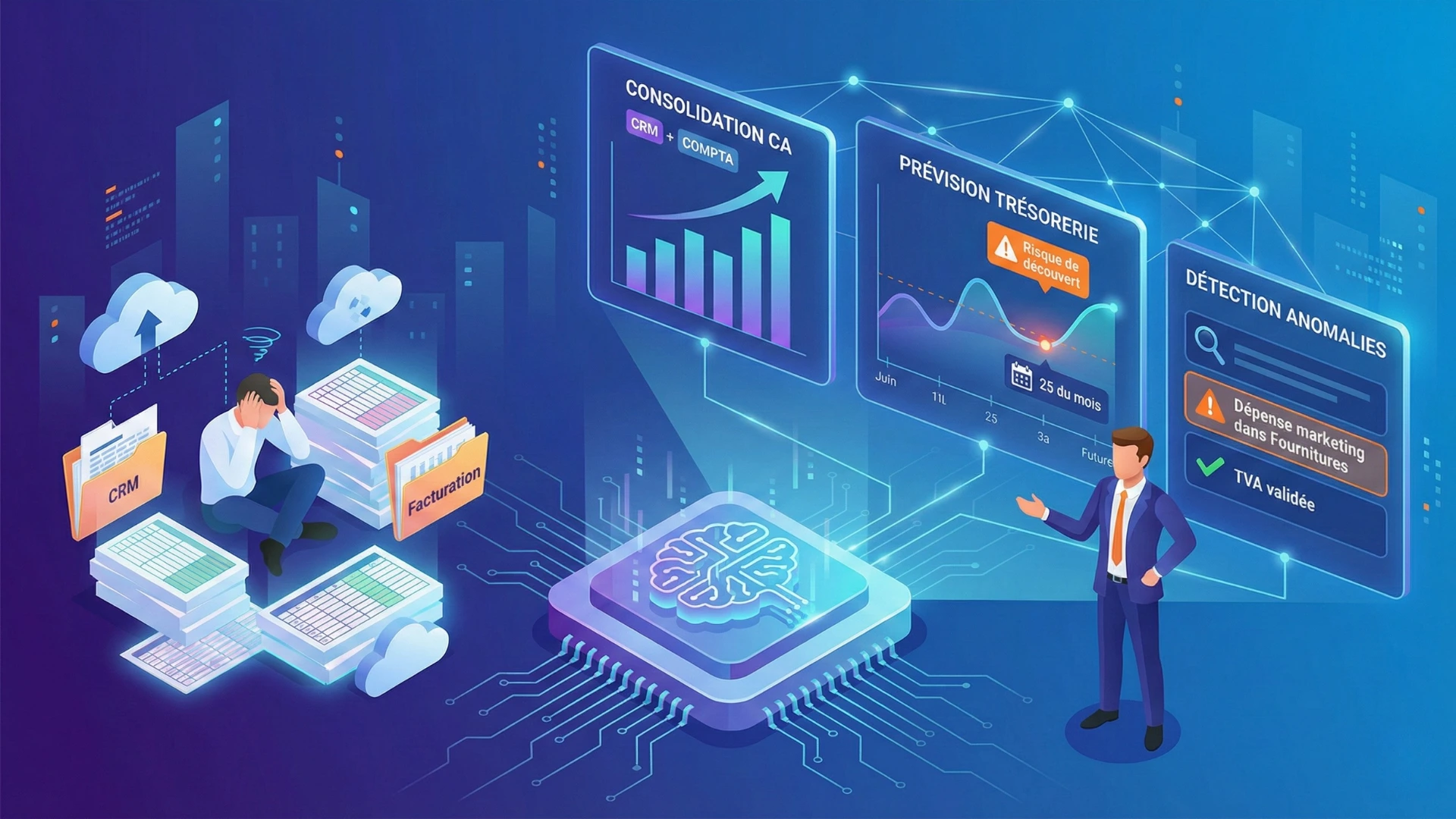 Les outils d'IA modernes, comme ceux intégrés dans Microsoft 365 Copilot ou via des connecteurs API intelligents, peuvent désormais "lire" et réconcilier ces sources hétérogènes. Au lieu de copier-coller des valeurs, vous demandez à l'IA de : "Générer un tableau comparatif du CA réalisé versus le budget prévisionnel en consolidant les données du CRM et de la compta". L'IA identifie les correspondances, nettoie les doublons et vous propose un tableau propre.