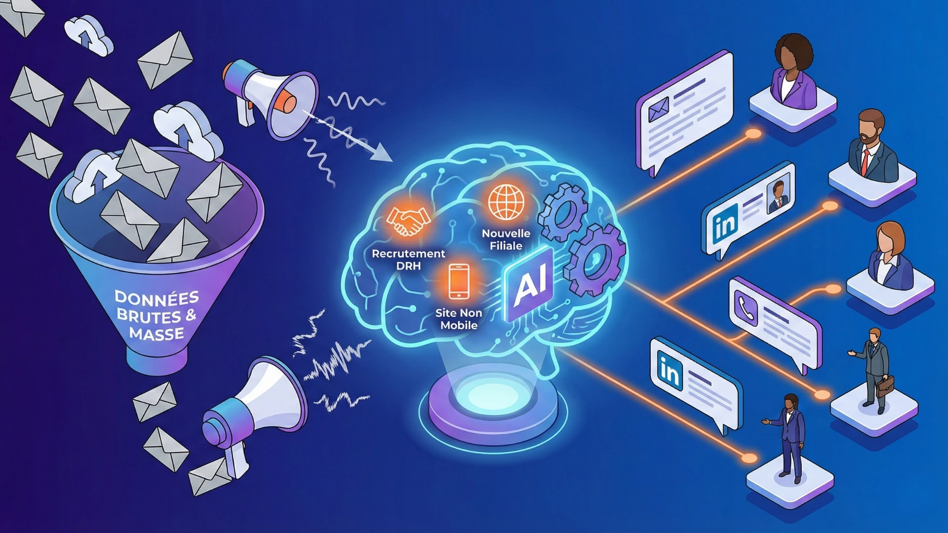 Aujourd'hui, des outils d'IA peuvent scanner le web en quelques secondes pour vous dire : "Cette entreprise vient de recruter un DRH", "Ils ont ouvert une filiale en Allemagne" ou "Leur site web n'est pas adapté aux mobiles".