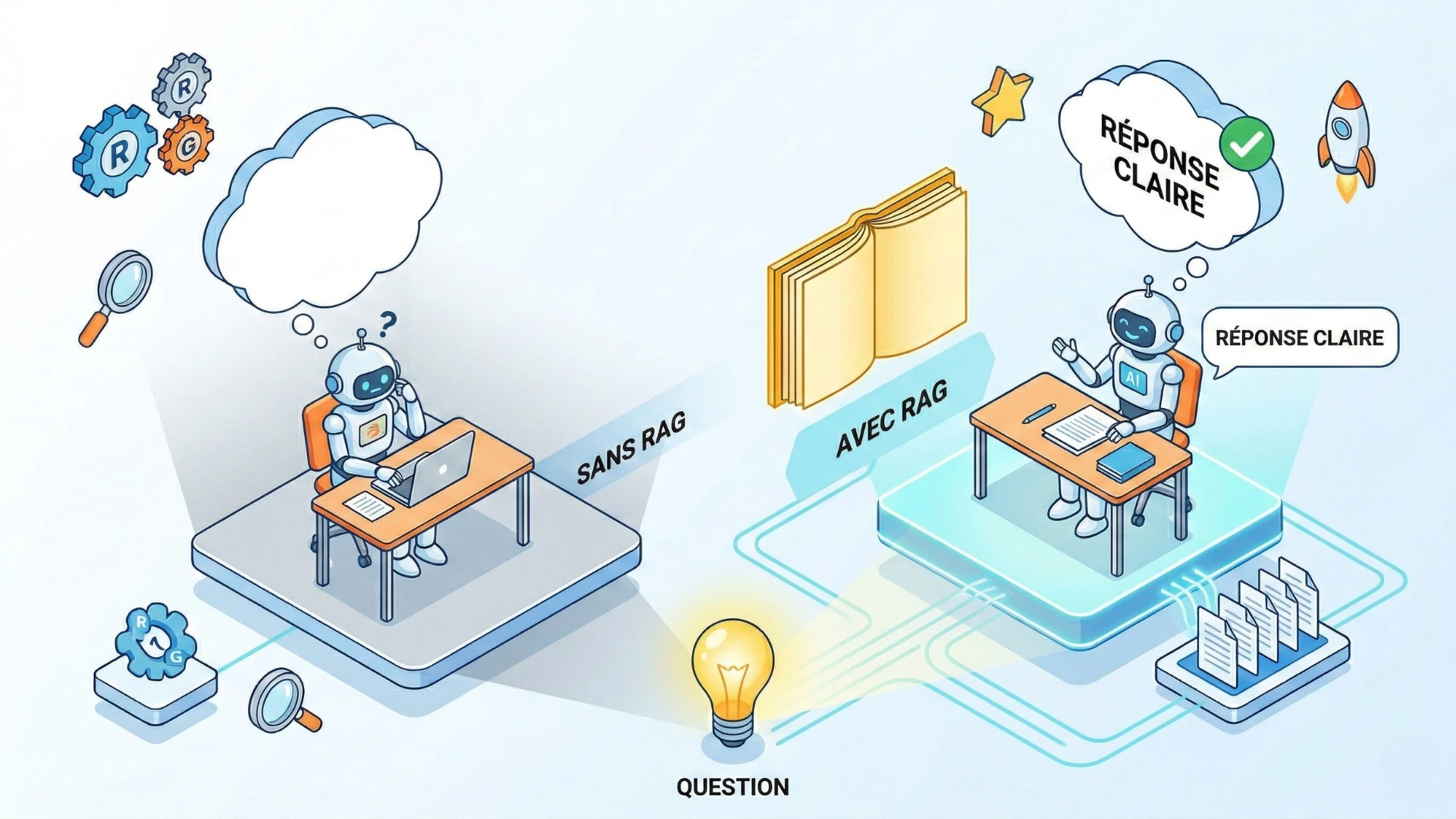 Le RAG n’est pas un outil que vous installez. C’est une méthode, une façon de faire travailler l’IA différemment. Pour comprendre, il suffit d’une analogie.