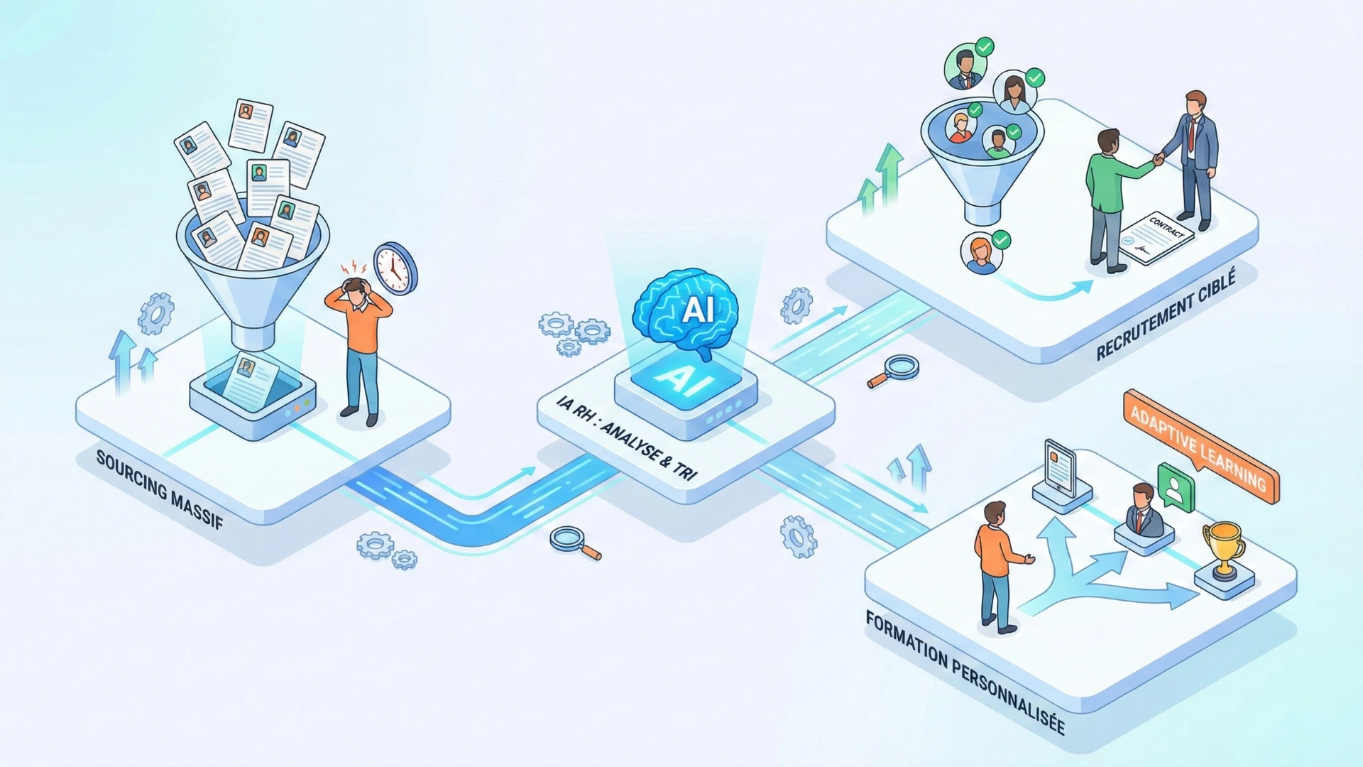 Recruter plus vite, former plus juste, et fidéliser durablement. Voilà la promesse d'une fonction RH augmentée, où la technologie s'occupe du flux pour que vous puissiez vous occuper des gens.